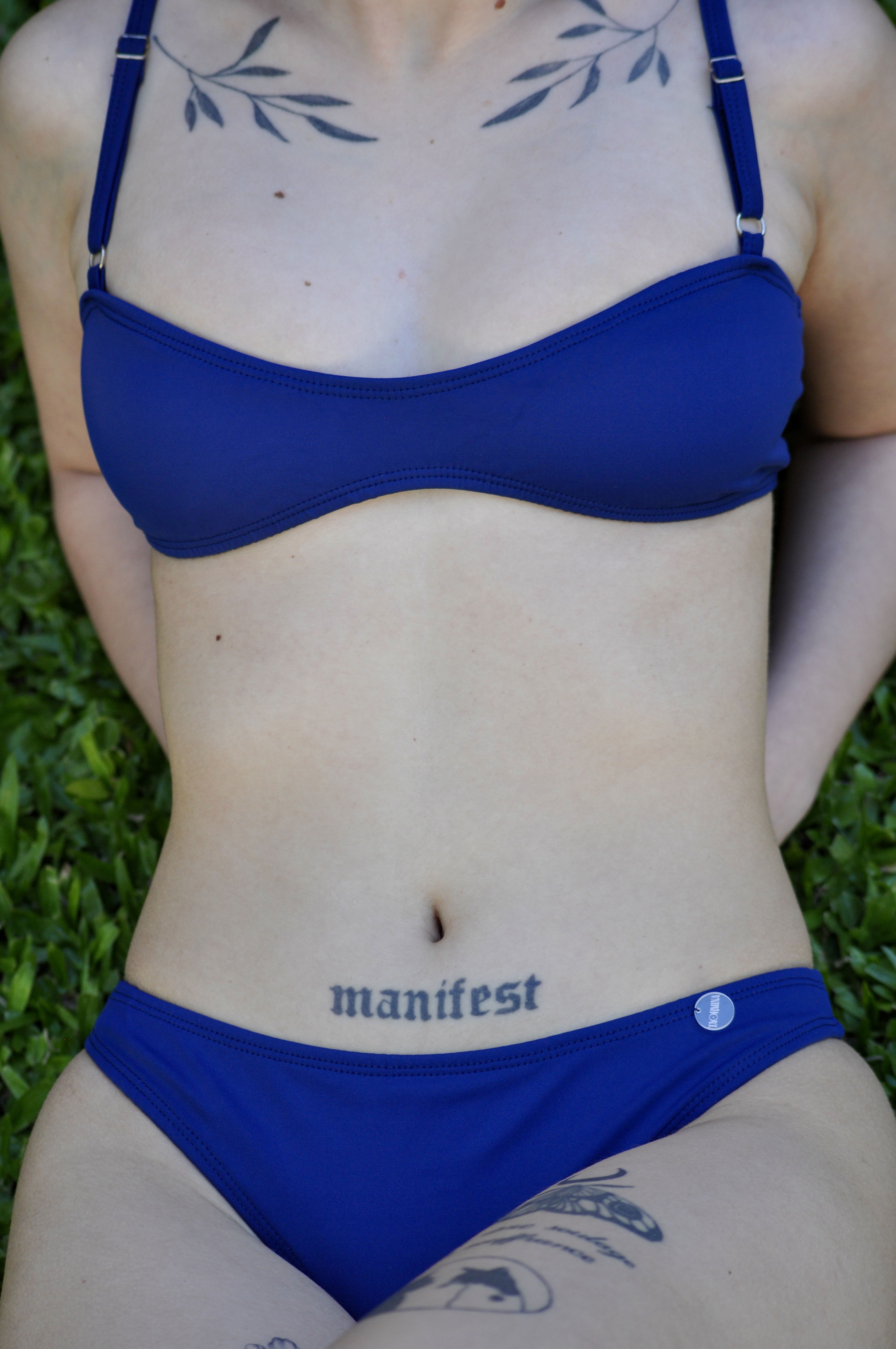- Corpiño con onda de lycra. Tiene breteles regulables y tiras para atar en la espalda